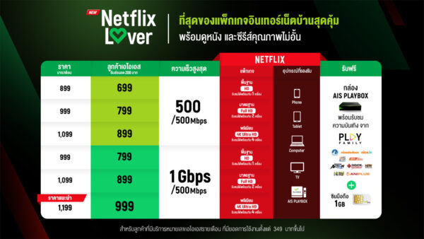 ดูรายละเอียดเพิ่มเติมที่ https://www.ais.th/fibre/package_netflixlover.html