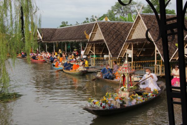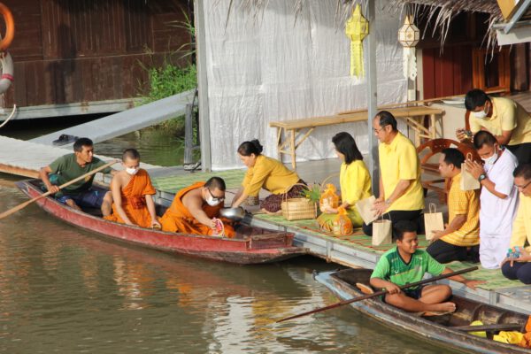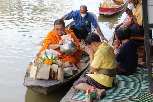 โดยพระสงฆ์ออกรับบิณฑบาตทางเรือ จำนวน 9 รูป ตั้งแต่เวลา 07.00 น. ทุกเช้าวันเสาร์ วันอาทิตย์ และวันหยุดนักขัตฤกษ์ เพื่ออนุรักษ์ฟื้นฟูประเพณีอันดีงามที่ปัจจุบันหาชมได้ยาก