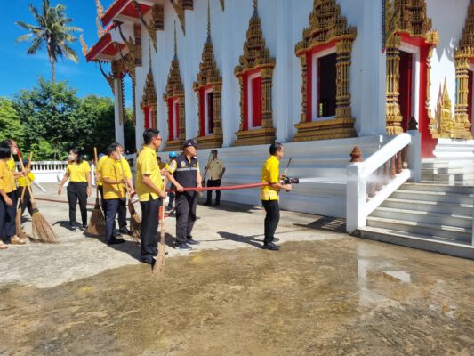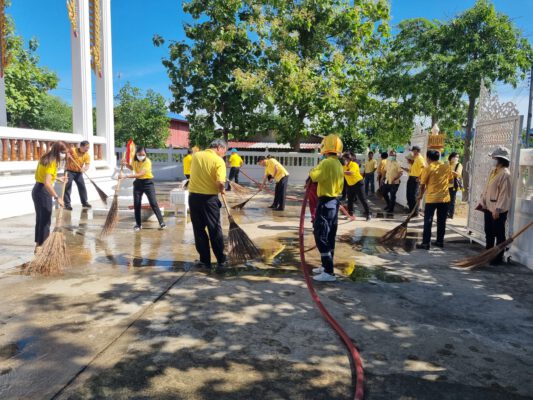 จากนั้น ผู้ร่วมกิจกรรมร่วมกัน ฉีดน้ำทำความสะอาดบริเวณพระอุโบสถ ทำความสะอาดศาสนสถาน เก็บขยะรอบ/ กวาดบริเวณรอบวัด ทำความสะอาดห้องน้ำ ปรับภูมิทัศน์ เพื่อให้มีสิ่งแวดล้อม ที่เอื้อต่อสุขภาพ รวมถึงกิจกรรมเชิงพุทธ โดยจะก่อให้เกิดความเชื่อมโยงและสัมพันธภาพที่ดีให้เกิดขึ้นระหว่างวัดกับชุมชน ทำให้พระสงฆ์มีสุขภาพแข็งแรง วัดมีความมั่นคง ชุมชนมีความเข้มแข็งสืบไป