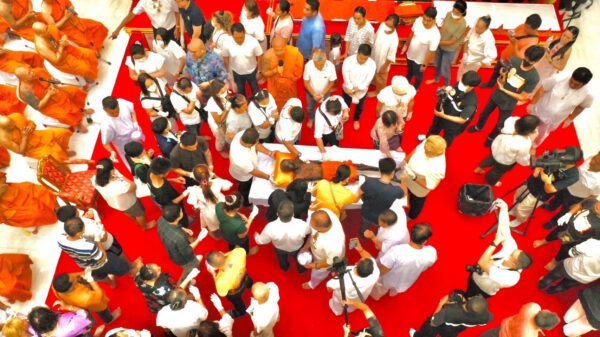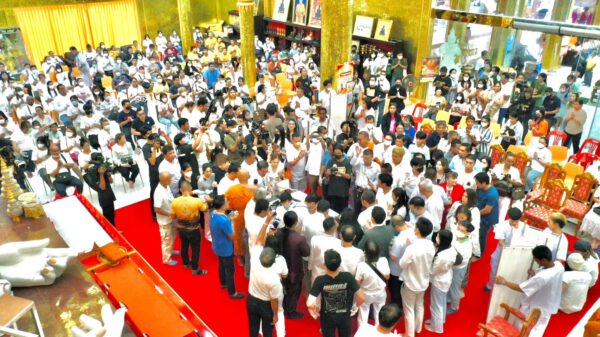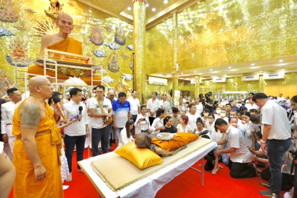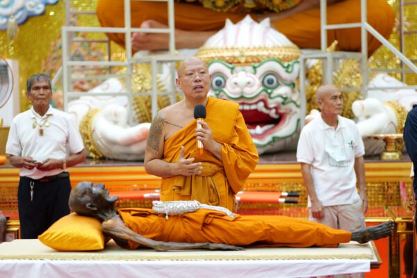 ขณะที่ นายพนม ยีรัมย์ หรือ จา พนม ดาราคิวบู๊ ระดับโลก บอกว่า วันนี้ เป็นโอกาสที่ดีที่หลวงพี่น้ำฝน ได้มาบอกบุญในวันนี้ ซึ่งมาเห็นพุทธศาสนิกชนเข้ามาร่วมงานกันมากในวันนี้รู้สึกอิ่มบุญเป็นสิริมงคลกับตัวเองและครอบครัว ซึ่งวันนี้เป็นวันที่สำคัญทางพระพุทธศาสนาวันนี้เป็นงานเปลี่ยนผ้าครอง เปลี่ยนชีวิต ก็ขอให้ทุกคนยิ้มให้กันมีความสมัครสมานสามัคคีมีกำลังใจในการดำเนินชีวิตต่อไปด้วย