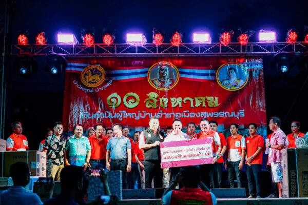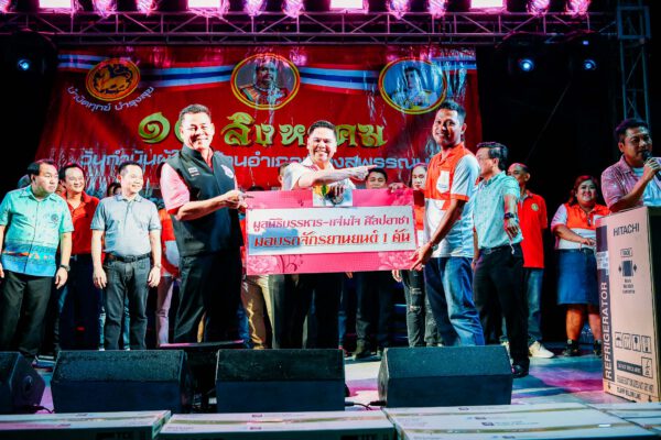 โดยนายวราวุธ เป็นตัวแทนมูลนิธิบรรหาร-แจ่มใส ศิลปอาชาสนับสนุนรถจักรยานยนต์ให้แม่บ้านและจับของรางวัลอีกมากมาย นอกจากนี้นายคมสันติ์ สุขสมดาว นายกเทศบาลตำบลท่าระหัด เป็นตัวแทน บ.ชมเดือน คอมเพล็กซ์ จำกัด มอบเงินสนับสนุนในการจัดกิจจกรมครั้งนี้ จำนวน 50,000 บาท