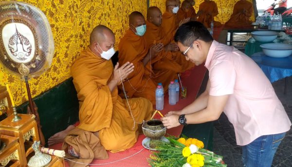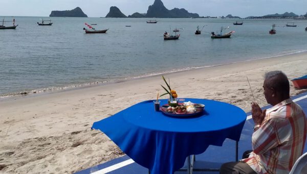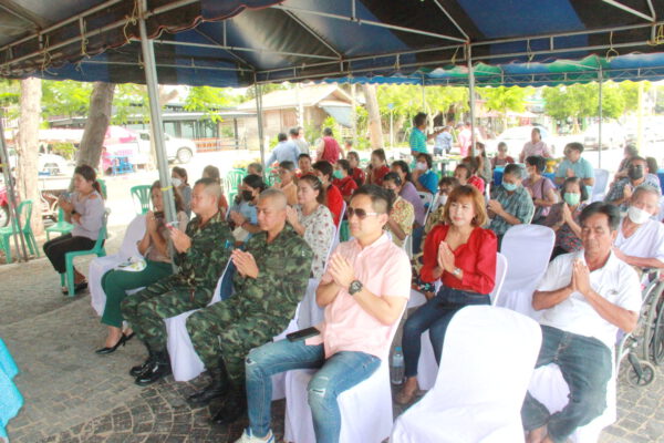 เมื่อเวลา 10.00 น.วันที่ 3 ก.ย.2566 ที่บริเวณชายทะเลชุมชนปากคลองบางนางรม หน้าอ่าวประจวบฯ ถ.ปิ่นอนุสรณ์ (ถนนสวนสน – บ้านคั่นกะได) ในเขตเทศบาลเมืองประจวบคีรีขันธ์ กลุ่มประมงพื้นบ้านอ่าวประจวบฯ ได้จัดทำบุญกลางบ้าน โดยนิมนต์พระสงฆ์มาสวดมนต์ และฉันภัตตาหารเพล เพื่ออุทิศส่วนกุศลให้กับดวงวิญญาณผู้เสียชีวิตทางทะเล และบรรพบุรุษที่ล่วงลับไปแล้ว และเพื่อฉลองการสร้างเขื่อนกันคลื่นทะเลซัดชายฝั่งเสร็จสิ้น โดยมี นายกมล แก้วเทศ นายกเทศมนตรีเมืองประจวบฯ พร้อม นางวรรณา ศรีจุฬางกูล รองนายกฯ สมาชิกสภาเทศบาล ประกอบด้วย นางสาวอุธารัตน์ บุญฤทธิ์ , นางศรีรัตน สีมาพานิช , นายสมบัติ จันทร์เพชร (ประธานชุมชนม่องล่าย) , นางบุญศรี เจนจุลพร , นางสาววันเพ็ญ บุตรขจร นายพงษ์ศักดิ์ มิลินททัต (ประธานชุมชนตลาดสด) ร.อ.เสน่ห์ ประมาณ ทหาร ฉก.จงอางศึก นายสมหมาย นิตลาภ ผู้แทน หจก.กุยบุรีบริการ ร่วมพิธี มี นายแดง แก้วชิงดวง ประธานกลุ่มประมงพื้นบ้านอ่าวประจวบฯ นายอรุณ แสงฉาย ประธานชุมชนปากคลองบางนางรม และชาวบ้านในชุมชน ตลอดจนกลุ่มชาวประมงพื้นบ้านในพื้นที่ ร่วมต้อนรับ