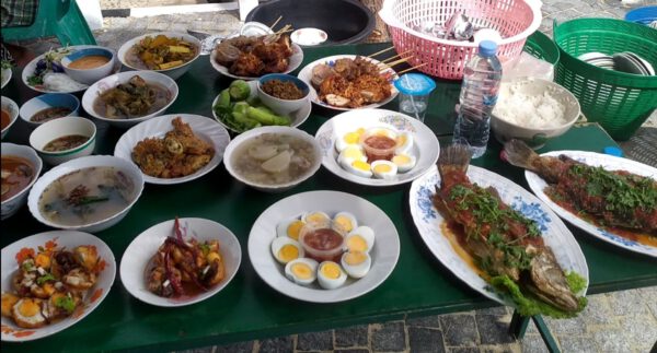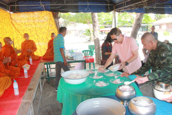 โดยกิจกรรมตั้งแต่ช่วงเช้า ชาวบ้านในชุมชนและชาวประมงพื้นบ้านในละแวกดังกล่าว ต่างร่วมกันนำอาหารคาว-หวาน ผลไม้ นำมาร่วมทำบุญเลี้ยงพระ ถวายภัตราหารเพลพระสงฆ์ จำนวน 9 รูป จากวัดธรรมิการามวรวิหาร และพิธีเซ่นไหว้สิ่งศักดิ์สิทธิ์ภายในชุมชน ตลอดจนเซ่นดวงวิญญาณที่ล่วงลับในทะเล ด้วยอาหารคาวหวาน ผลไม้ ดอกไม้ ธูป เทียน