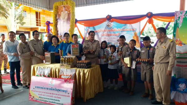 นอกจากนี้ นายกเหล่ากาชาดจังหวัดสุพรรณบุรี นายกองค์การบริหารส่วนจังหวัดสุพรรณบุรี และหัวหน้าส่วนราชการที่เกี่ยวข้อง ทำการมอบข้าวสารเพื่อเป็นอาหารกลางวันแก่เด็กนักเรียน 22 กระสอบ/น้ำมันพืช 11 ลัง. แบะไข่ไก่ 55 แผง แก่ โรงเรียนในพื้นที่ อ.ดอนเจดีย์ 11โรง /เครื่องอุปโภคบริโภค 50 ชุด รวมถึงองค์การบริหารส่วนจังหวัดสุพรรณบุรี. มอบสนามเด็กเล่นแก่โรงเรียนอนุบาลพระบรมราชานุสรณ์ดอนเจดีย์.