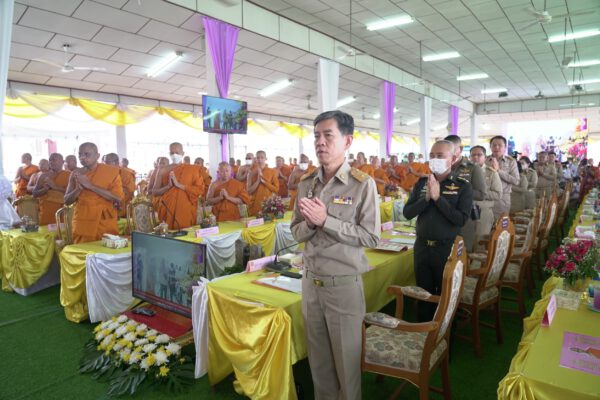 โดยมี นายสุรศักดิ์ เจริญศิริโชติ ผู้ว่าราชการจังหวัดนครปฐม กล่าวถวายความต้อนรับ ร่วมด้วย หัวหน้าส่วนราชการ กอ.รมน.จังหวัดนครปฐม นายอำเภอสามพรานผู้นำท้องถิ่น กำนัน ผู้ใหญ่บ้าน เข้าร่วมพิธี จังหวัดนครปฐม ส่วนราชการทุกส่วนราชการ ได้ร่วมกับคณะสงฆ์จังหวัดนครปฐม ส่งเสริมให้ประชาชนได้มีความตระหนักและปฏิบัติตนเป็นพุทธศาสนิกชนที่ดี น้อมนำหลักศีล 5 มาประยุกต์ใช้เป็นแนวทางในการดำเนินวิถีชีวิต การบูรณาการกิจการคณะสงฆ์ และการพัฒนาหมู่บ้านยั่งยืน(Sustainable Village) น้อมนำหลักปรัชญาของเศรษฐกิจพอเพียง และหลักธรรมทางพระพุทธศาสนามาใช้ในการดำรงชีวิต โดยมีชุมชน คือ หมู่บ้าน วัด และราชการ ร่วมกันขับเคลื่อนไปด้วยกัน โครงการหมู่บ้านรักษาศีล 5 เป็นโครงการที่จะช่วยส่งเสริมให้เกิด ความปรองดองสมานฉันท์ขึ้นในสังคม ศีล 5 เป็นหลักธรรมข้อปฏิบัติพื้นฐานของการดำรงชีวิต ในการอยู่ร่วมกันอย่างสันติสุข มีความสามัคคีเกิดขึ้นในชุมชน การส่งเสริมให้ผู้คนรักษาศีล 5 นอกจากจะเป็นประโยชน์ต่อการเสริมสร้างความสมานฉันท์แล้ว ยังจะช่วยส่งเสริมการพัฒนาประเทศไทยให้เจริญก้าวหน้าอย่างยั่งยืนสืบไป