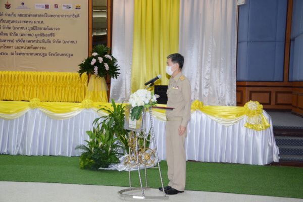 วันที่ 21 กันยายน 2566 ที่โรงพยาบาลนครปฐม อำเภอเมือง จังหวัดนครปฐมศาสตราจารย์ เกียรติคุณ นายแพทย์เกษม วัฒนชัย องคมนตรี ประธานกรรมการโครงการราษฎรสุขใจ พลานามัยสมบูรณ์ แพทย์พระราชทาน ตรวจเยี่ยมโครงการราษฎรสุขใจ พลานามัยสมบูรณ์ แพทย์พระราชทาน ครั้งที่ 10 ประจำปี 2566 โดยมีนายสุรศักดิ์ เจริญศิริโชติ ผู้ว่าราชการจังหวัดนครปฐม นายแพทย์สาธารณสุขจังหวัด ผู้อำนวยการโรงพยาบาลนครปฐม และศาสตราจารย์เกียรติคุณ นายแพทย์พรชัย สิมะโรจน์ หัวหน้าศูนย์นโยบายและการจัดการสุขภาพ คณะแพทย์ศาสตร์ โรงพยาบาลรามาธิบดี มหาวิทยาลัยมหิดล ร่วมให้การต้อนรับ ทั้งนี้เพื่อให้กำลังใจแก่คณะแพทย์พยาบาล จิตอาสา ผู้ป่วย ตลอดจนญาติผู้ป่วยที่เข้าร่วมโครงการในครั้งนี้