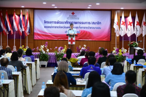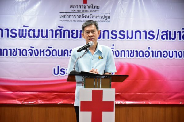 วันที่ 22 กันยายน 2566 ที่สำนักงานเหล่ากาชาดจังหวัดนครปฐม นายสุรศักดิ์ เจริญศิริโชติ ผู้ว่าราชการจังหวัดนครปฐม เป็นประธานเปิดโครงการอบรมพัฒนาศักยภาพคณะกรรมการสมาชิกเหล่ากาชาดจังหวัด และกิ่งกาชาดอำเภอบางเลน ประจำปี 2566 เพื่อให้คณะกรรมการ/สมาชิกเหล่ากาชาดจังหวัด/กิ่งกาชาดอำเภอ และผู้เกี่ยวข้อง ได้มีความรู้ความเข้าใจเกี่ยวกับนโยบาย และภารกิจหลักของสภากาชาดไทย สิทธิประโยชน์ ระเบียบ ข้อบังคับต่าง ๆ ของสภากาชาดไทย การบรรเทาทุกข์ผู้ประสบสาธารณภัย การบริการโลหิต การบริจาคดวงตา อวัยวะ การสังคมสงเคราะห์ การส่งเสริมคุณภาพชีวิต ตลอดจนเข้าใจบทบาทหน้าที่ของเหล่ากาชาดจังหวัดในปัจจุบัน โดยมี นางวรณัน สวนทอง นางกัญจนา สร้อยอินทรากุล รองนายกเหล่ากาชาดจังหวัดนครปฐม หัวหน้าส่วนราชการประจำจังหวัด คณะกรรมการ/สมาชิกเหล่ากาชาดจังหวัดนครปฐม เข้ารับการอบรมในครั้งนี้
