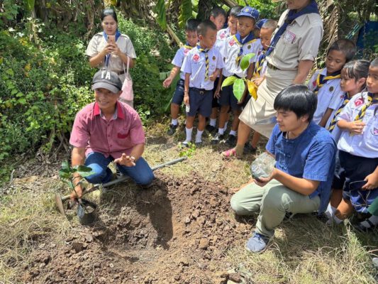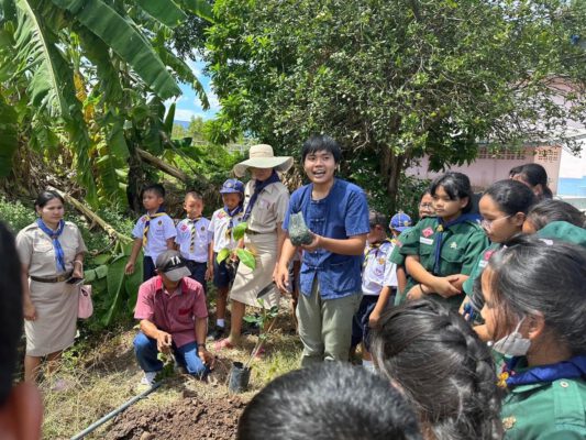 ร่วมกับนายวิราช ออนา Smart Farmer กลุ่มส่งเสริมอาชีพการเกษตรบ้านโพธิ์ศรี ถ่ายทอดความรู้ เรื่องการปลูก และการดูแลพืชสมุนไพร ต้นพันธุ์มะกรูด
