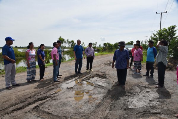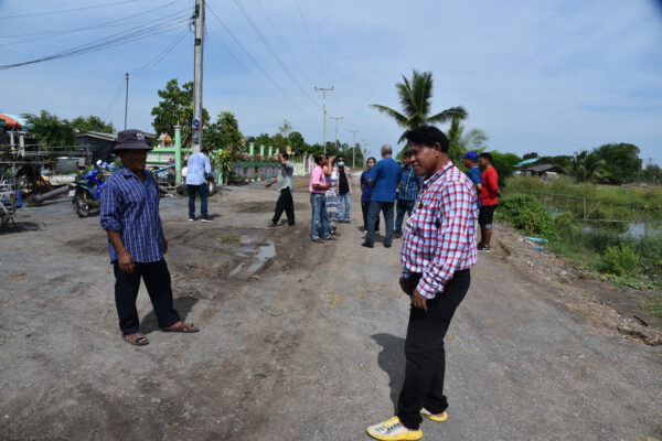 นายรังสิต กลิ่นสุข นายก อบต.บ้านช้าง กล่าวว่าที่ผ่านมาทาง อบต.ได้ส่งมอบพื้นที่ถนนสายดังกล่าวให้กับโยธาธิการจังหวัด เพื่อดำเนินการเทถนนลาดยางมะตอย ตั้งแต่ปลายปี 2564 และเริ่มเข้าดำเนินการต้นปี 2565 แรกๆผู้รับจ้างได้ปรับผิวถนน โดยเปิดหน้างานเอาลูกรังเดิมออกไป เหลือไว้เพียงหน้าดิน ทำให้เกิดปัญหาความเดือดร้อนคือระยะสัญญาจ้างได้ขยายออกไป ผู้รับเหมารับปากว่าจะมาลงหินคลุกให้นี้เวลาล่วงเลยผ่านมา 4 เดือน ติดต่อก็ไม่ได้ ทำให้ที่ผ่านมาชาวบ้านเดือดร้อนเรื่องการสัญจรไปมาอย่างมาก ถ้าเป็นหน้าแล้งก็จะประสบปัญหาเรื่องฝุ่น แต่ก็ยังพอทนกันได้ แต่เมื่อเข้าหน้าฝนถือว่าเดือดร้อนมากที่สุดทางเละเทะเดินทางลำบาก ที่ผ่านมาชาวบ้านที่นี้อึดมากทนกันมาตลอดจนทนไม่ไหว เพราะที่ผ่านทำหนังสือผ่านโยธาธิการจังหวัดฯให้เข้ามาดู แต่ไม่มีความคืบหน้า จึงขอวอนให้มาช่วยดูแลเอาหินคลุกมาลงให้ก่อนก็ยังดี รถชาวบ้านจะได้วิ่งสะดวกไม่ต้องติดหล่มติดโคลน