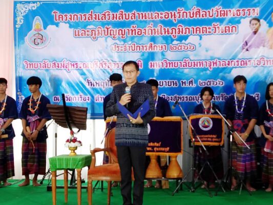 วันนี้(28 ก.ย.66) ที่วัดการ้อง ตำบลสวนแตง อำเภอเมืองสุพรรณบุรี จังหวัดสุพรรณบุรี จัดเวทีเสวนา โครงการส่งเสริมสืบสานและอนุรักษ์ศิลปวัฒนธรรม และภูมิปัญญาท้องถิ่นในภูมิภาคตะวันตก ปีการศึกษา ๒๕๖๖ เรื่อง “อัตลักษณ์วัฒนธรรมพื้นถิ่น คุณค่าและการอนุรักษ์”