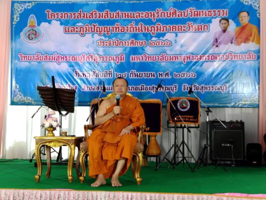 โดยมี พระสุวรรณวชิราภรณ์ ดร. เจ้าคณะจังหวัดสุพรรณบุรี ผู้อำนวยการวิทยาลัยสงฆ์สุพรรณบุรีศรีสุวรรณภูมิ กล่าวสัมโมทนียกถา และนายธีรยุทธ์ จันทร์ดิษฐวงษ์ รองผู้ว่าราชการจังหวัดสุพรรณบุรี เป็นประธานกล่าวเปิดงาน