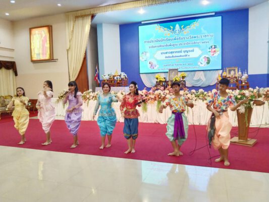 ในการนี้ พระสุพรรณวชิราภรณ์ เจ้าคณะจังหวัดสุพรรณบุรี นายธีรยุทธ์ จันทร์ดิษฐวงษ์ รองผู้ว่าราชการจังหวัดสุพรรณบุรี และแม่ขวัญจิต ศรีประจันต์ ศิลปินแห่งชาติ สาขาศิลปะการแสดง ร่วมเป็นเกียรติในการประเมินและกล่าวคำนิยม