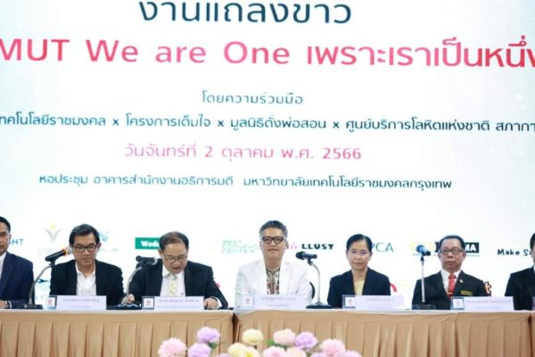 วันจันทร์ที่ 2 ตุลาคม 2566 มทร.รัตนโกสินทร์ นำโดย รศ.ดร.อุดมวิทย์ ไชยสกุลเกียรติ อธิการบดี ร่วมแถลงข่าว RMUT We are One เพราะเราเป็นหนึ่ง จัดโดย 9 มทร. ร่วมกับมูลนิธิดั่งพ่อสอน และศูนย์บริการโลหิตแห่งชาติ สภากาชาดไทย ซึ่งจะช่วยส่งเสริมภาพลักษณ์ของมหาวิทยาลัยในฐานะมหาวิทยาลัยต้นแบบของการเสียสละให้กับสังคมส่วนรวมและเพื่อเป็นการประชาสัมพันธ์ให้กลุ่มเยาวชนและประชาชนทั่วไปรับทราบอย่างทั่วถึง ณ หอประชุม อาคารสำนักงานอธิการบดี มหาวิทยาลัยเทคโนโลยีราชมงคลกรุงเทพ (พื้นที่เทคนิคกรุงเทพ)