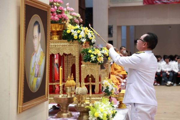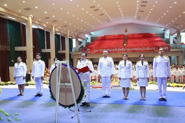 วันพฤหัสบดีที่ 12 ตุลาคม 2566 มทร.รัตนโกสินทร์ นำโดย รศ.ดร.อุดมวิทย์ ไชยสกุลเกียรติ อธิการบดี เป็นประธานในโครงการเฉลิมพระเกียรติสถาบันพระมหากษัตริย์เนื่องในวันนวมินทรมหาราช วันที่ระลึกถึงพระมหาราชรัชกาลที่ 9 ผู้ยิ่งใหญ่ เพื่อรำลึกถึงพระมหากรุณาธิคุณพระบาทสมเด็จพระบรมชนกาธิเบศร มหาภูมิพลอดุลยเดชมหาราชบรมนาถบพิตร ตลอดจนคณะผู้บริหาร คณาจารย์ บุคลากร และนักศึกษา ที่เข้าร่วมโครงการ ได้ตระหนักรู้ในความจงรักภัคดีที่มีต่อพระมหากษัตริย์ไทย และสร้างจิตสำนึกในการเทิดทูน และดำรงไว้ซึ่งชาติ ศาสนา พระมหากษัตริย์ โดยกิจกรรมเริ่มด้วยพิธีบำเพ็ญทักษิณานุปทานกุศลถวายแด่พระบาทสมเด็จพระบรมชนกาธิเบศร มหาภูมิพลอดุลยเดชมหาราชบรมนาถบพิตร และถวายราชสดุดีพระเกียรติคุณ จากนั้นเป็นพิธีวางพวงมาลาถวายราชสักการะ จากนั้นรศ.ดร.อุดมวิทย์ ไชยสกุลเกียรติ อธิการบดีประธานในพิธี นำกล่าวถวายราชสดุดี น้อมรำลึกในพระมหากรุณาธิคุณ เนื่องในวันนวมินทรมหาราช