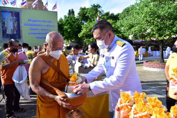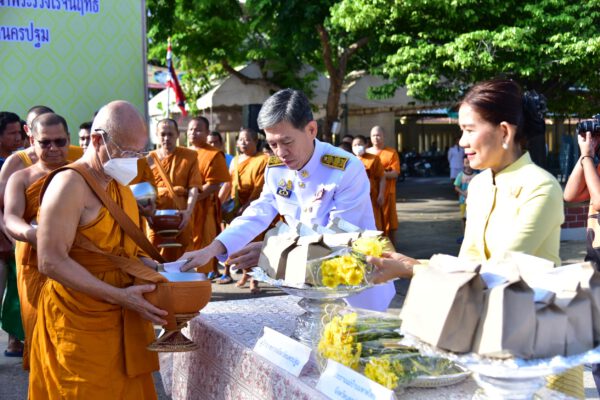 จากนั้น ผู้ว่าราชการจังหวัดนครปฐม นำผู้เข้าร่วมพิธี ร่วมทำบุญตักบาตร ข้าวสารอาหารแห้ง ถวายแด่พระสงฆ์ 89 รูป ณ บริเวณลานหน้าพระร่วงโรจนฤทธิ์ องค์พระปฐมเจดีย์ โดยพระเทพมหาเจติยาจารย์ ที่ปรึกษาเจ้าคณะภาค 14 วัดพระปฐมเจดีย์ราชวรมหาวิหาร นำพระสงฆ์รับบิณฑบาต เพื่อถวายพระราชกุศลแด่พระบาทสมเด็จพระบรมชนกาธิเบศร มหาภูมิพลอดุลยเดชมหาราช บรมนาถบพิตร อีกเพื่อแสดงความจงรักภักดี และน้อมรำลึกในพระมหากรุณาธิคุณอันหาที่สุดมิได้