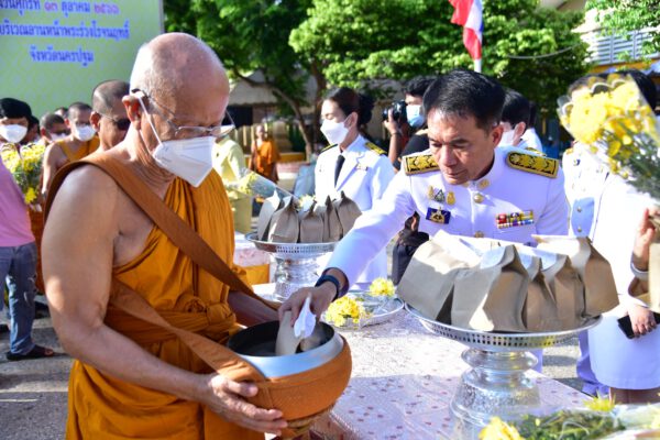 วันที่ 13 ตุลาคม 2566 ที่ศาลากองอำนวยการ องค์พระปฐมเจดีย์ อำเภอเมือง จังหวัดนครปฐม นายสุรศักดิ์ เจริญศิริโชติ ผู้ว่าราชการจังหวัดนครปฐม เป็นประธานพิธีสวดพระพุทธมนต์และทำบุญตักบาตร เนื่องในวันนมินทรมหาราช ประจำปี 2566 โดยมีนายกเหล่ากาชาดจังหวัด รองผู้ว่าราชการจังหวัด หัวหน้าส่วนราชการ ข้าราชการทหาร ตำรวจ องค์กรภาคเอกชน และประชาชนทุกหมู่เหล่า ร่วมพิธีในครั้งนี้