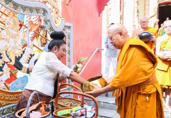 หลวงพี่น้ำฝน นำคณะสงฆ์ประกอบพิธีทงพระพุทธศาสนา และให้โอวาทแก่พระภิกษุในปกครองรวมถึงญาติโยม ในประเพณีตักบาตรเทโวโรหณะ ประจำปี 66 โดยมีนักแสดงระดับโลก จาพนม ร่วมสืบสานประเพณีออันดีงามซึ่งมีประชาชนมาร่วมงานวันพระใหญ่ด้วยบรรยากาศชื่นมื่นและอิ่มในบุญ