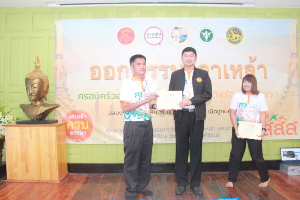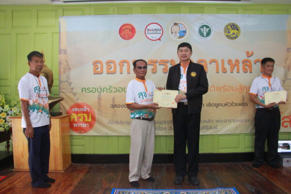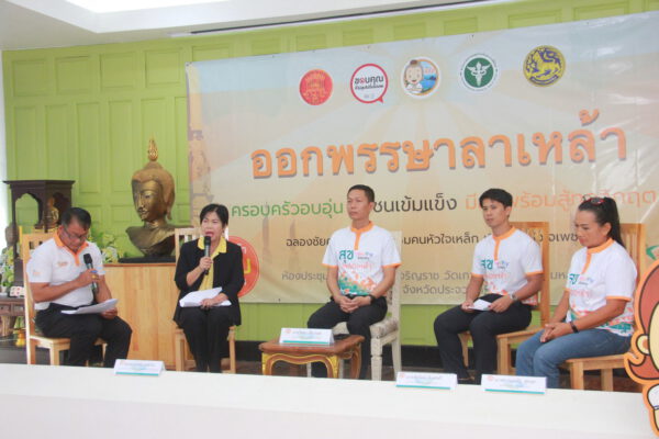 โดยทั้งนี้ กิจกรรมในช่วงเช้า เวลา 09.30 น. นายวิทยา เขียวรอด นายอำเภอเมืองประจวบฯ ได้มาเป็นประธานพิธีเปิดกิจกรรม พร้อมร่วมเวทีเสวนา “ออกพรรษาลาเหล้า ครอบครัวอบอุ่น ชุมชนเข้มแข็ง มีสติพร้อมสู้ทุกวิกฤต (ฉลองชัยคนหัวใจหิน ชื่นชมคนหัวใจเหล็ก เชิดชูคนหัวใจเพชร) ผู้ร่วมเสวนามี น.ส.อุบลวรรณ คงสว่าง เครือข่ายองค์กรงดเหล้าภาคตะวันตก นายชัยรัตน์ จันทร์ตรี นักวิชาการสาธารณสุขชำนาญการ สำนักงานสาธารณสุขจังหวัด น.ส.นภณัฐ ศุภกุล ตัวแทนคนหัวใจเพชร ชุมชนพุน้อย อ.สามร้อยยอด