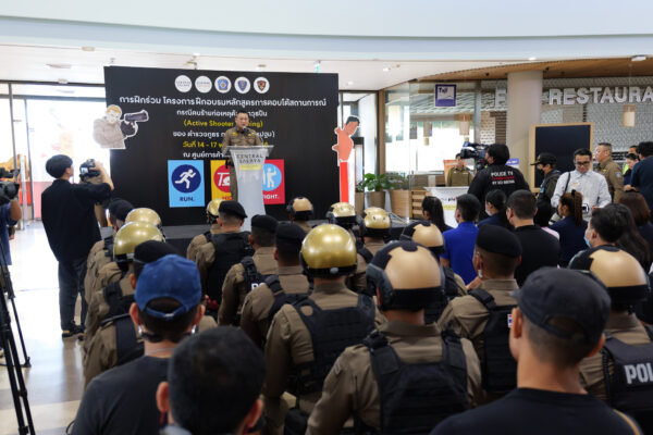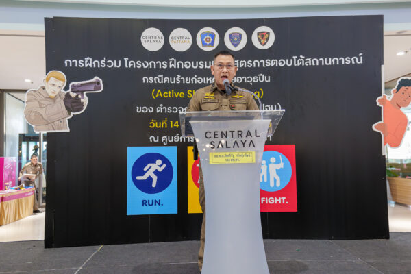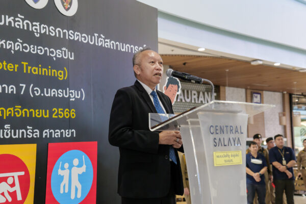 วันที่ ๑๙ พ.ย.๒๕๖๖ ณ ศูนย์การค้าเซ็นทรัล ศาลายา ตำรวจภูธรภาค ๗ (จังหวัดนครปฐม) ร่วมกับศูนย์การค้าเซ็นทรัล ศาลายา ฝึกซ้อมร่วมโครงการการฝึกอบรมหลักสูตรการตอบโต้สถานการณ์ กรณีคนร้ายก่อเหตุด้วยอาวุธปืน (Active Shooter Training) จึงได้จัดให้มีการสาธิตการฝึกตอบโต้สถานการณ์คนร้ายก่อเหตุด้วยอาวุธปืน (Active Shooter Training) ณ ศูนย์การค้าเซ็นทรัล ศาลายา แบบบูรณาการทั้งการทำงานของเจ้าหน้าที่ตำรวจที่เข้าไประงับเหตุ ในส่วนภาคเอกชนทั้งในส่วนเจ้าหน้าที่ของศูนย์การค้าและประชาชนผู้เข้ามาใช้บริการให้สามารถตอบโต้และจัดการสถานการณ์ Active Shooter ได้อย่างเหมาะสมและปลอดภัย