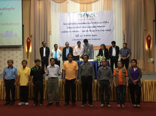 ด้านนายเรืองศักดิ์ สุขาทิพยพันธ์ รองประธานชมรม STRONG จิตพอเพียง ต้านทุจริตจังหวัดสุพรรณบุรี กล่าวเพิ่มเติมว่า จังหวัดสุพรรณบุรีเป็น ใน ๒๗ จังหวัดนำร่องของประเทศไทย ซึ่งกิจกรรมประกอบด้วย การเรียนรู้เพื่อพัฒนาศักยภาพการป้องกันและปราบปรามการทุจริตให้แก่สมาชิกชมรมฯ โดยทีมวิทยากรจากคณะกรรมการชมรม STRONG – จิตพอเพียงต้านทุจริต จังหวัดสุพรรณบุรีและจากกลุ่มปฏิบัติการหมาเฝ้าบ้าน และสรุปผลการจัดกิจกรรมในช่วงท้าย เพื่อให้ได้แนวคิดรูปแบบวิธีการ ที่เป็นประโยชน์ในการดำเนินงานของชมรมฯ ได้อย่างเหมาะสมผลักดันการป้องกันการทุจริตเชิงรุก ด้วยการสร้างเสริมให้บุคคลและชุมชนมีจิตพอเพียงต้านทุจริต ด้วยกรอบแนวคิด โมเดล STRONG เพื่อพัฒนาเป็นวัฒนธรรมต้านทุจริต