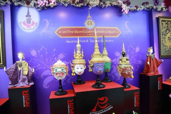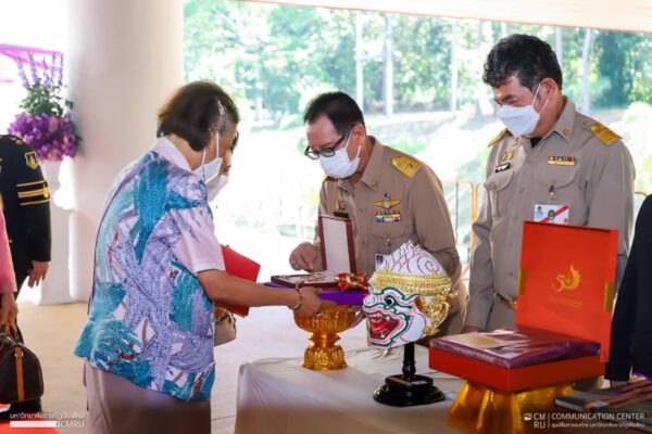 #ซึ่งของที่ระลึกรับเสด็จ ฯ ในปีนี้ ได้แก่ กิ๊บทำจากวัสดุโลหะเงินฝังพลอยผสมหญ้าลิเภา #ผลงานของ ผศ.สุทัน อนุรักษ์ จากสาขาเครื่องโลหะและรูปพรรณอัญมณี และหัวโขน หนุมาน ลงรักปิดทอง #ผลงานของ ผศ.สุรัฐ บุญทรง และสาขาวิชาหัตถศิลป์มหาวิทยาลัยเทคโนโลยีราชมงคลรัตนโกสินทร์ ทั้งนี้ศูนย์ประสานงาน อพ.สธ. มทร.รัตนโกสินทร์ เข้าร่วมจัดนิทรรศการ ระหว่างวันที่ 21-25 พฤศจิกายน 2566 เพื่อเผยแพร่ผลการปฏิบัติงานของหน่วยงานที่ร่วมสนองพระราชดำริ และเป็นการเทิดพระเกียรติในงานอนุรักษ์และพัฒนาทรัพยากรประเทศ นำไปสู่การผันสู่วิถีใหม่ในฐานไทยณ หอประชุมทีปังกรรัศมีโชติ มหาวิทยาลัยราชภัฏเชียงใหม่ ศูนย์แม่ริม อ.แม่ริมจ.เชียงใหม่