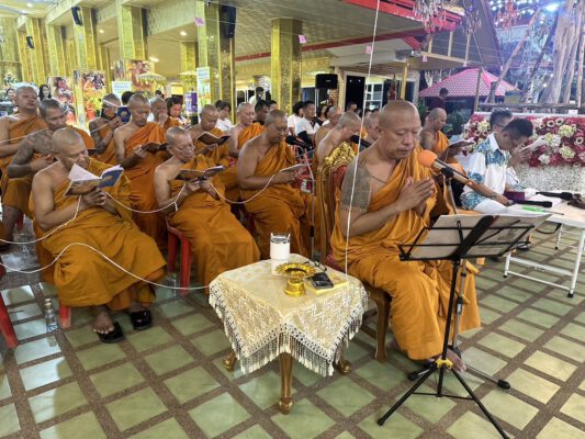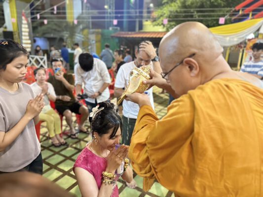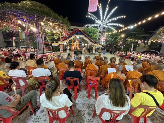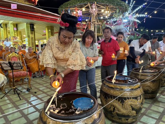 โดยในครั้งนี้เป็นวันที่พระจันทร์ซ้อนจันทร์ ทางด้าน พระครูปลัดสิทธิวัฒน์ (หลวงพี่น้ำฝน) เจ้าอาวาสวัดไผ่ล้อม จึงนำมหาสังข์มาใช้ในพิธี โดยมีคณะศิษย์ร่วมกันจุดธูปเทียน บูชาพระรัตนตรัย สิ่งศักดิ์สิทธ์ เทพยดา พร้อมจุดเทียนโอ่งน้ำมนต์ ซึ่งในวันนี้ตรงกับวันขึ้น 15 ค่ำ เดือน 12 เป็นวันลอยกระทง เป็นวันที่แหล่งน้ำทุกแห่ง จะมีประชาชนพากันไปวัดที่ตั้งอยู่ริมฝั่งแม่น้ำ ลำคลองและตามที่มีท่าน้ำ หรือไปตามริมแม่น้ำ เพื่อลอยกระทงบูชา ขอขมาพระแม่คงคา ตามขนบธรรมเนียมประเพณีและวัฒนธรรมที่สืบสานกันมาตั้งแต่โบราณ ซึ่งวันเพ็ญเดือน 12 ในแต่ละปีจะเป็นวันที่พระจันทร์จะเต็มดวงสว่างไสว สวยงาม จึงมีการขอพรในการทำสิ่งใดๆให้เกิดเป็นมงคลแก่ชีวิต สำเร็จในสิ่งที่ได้ภาวนาขอพร