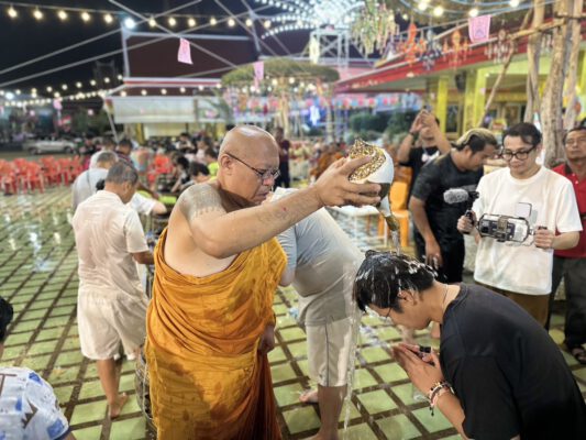 ในวันนี้ที่เหล่าซินแสและคณาจารย์ต่างกล่าวกันว่า วันลอยกระทงในปีนี้เป็นวันที่พระจันทร์ซ้อนพระจันทร์ ตามคำกล่าว ซึ่งทางวัดไผ่ล้อมได้จัดให้มีพิธีมหามงคลตามตำรับหลวงพ่อพูล อดีตเจ้าอาวาสวัดไผ่ล้อม บูรพาจารย์ผู้เข้มขลังและมีเมตตา ตั้งแต่เวลา 21.00น. จนถึงเวลา 24.00 น. โดยหลังจากพระสงฆ์เจริญพระพุทธมนต์เสร็จแล้ว พระครูปลัดสิทธิวัฒน์ (หลวงพี่น้ำฝน) เจ้าอาวาสวัดไผ่ล้อม เป็นผู้ตักน้ำพระพุทธมนต์อันศักดิ์สิทธิ์ อาบรดด้วยมหาสังข์ให้แก่คณะศิษย์ และผู้ร่วมในพิธี ซึ่งเปรียบเสมือนน้ำทิพย์มหามงคลมาอาบน้ำชำระร่างกาย ชำระสนิมที่เกาะติดในใจ ล้างสิ่งไม่ดีให้ออกไป และให้ต่อจากนี้ไปจงมีแต่ความเจริญรุ่งเรืองในบวรพุทธศาสนา เจริญก้าวหน้าในการงาน รุ่งเรืองทำกิจการค้า ก็ขายดี มีกำไร ร่ำรวย เงินทอง มีโชค มีลาภ ตลอดไป