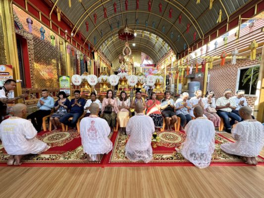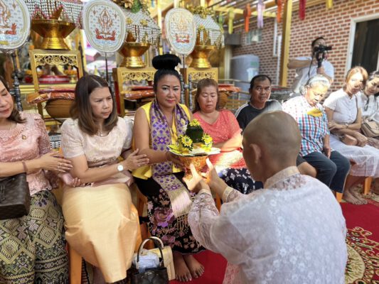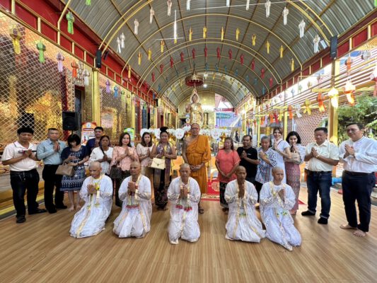 วันอังคารที่ 5 ธันวาคม 2566 เวลา 09.00 น. วัดไผ่ล้อม ต.พระปฐมเจดีย์ อ.เมือง จ.นครปฐม วัดไผ่ล้อมจัดโครงการอุปสมบทเฉลิมพระเกียรติ เนื่องใน โอกาส”วันชาติ” วันพ่อแห่งชาติ”และวันมหามงคลเฉลิมพระชนมพรรษา” 5 ธันวาคม 2566เพื่อน้อมรำลึกในพระกรุณาธิคุณอันหาที่สุดมิได้ และน้อมถวายพระราชกุศลแด่พระบาทสมเด็จพระบรมชนกาธิเบศร มหาภูมิพลอดุลยเดชบรมนาถบพิตร ผู้ทรงคุณอันประเสริฐ โดยมี พระครูปลัดสิทธิวัฒน์ (หลวงพี่น้ำฝน)เจ้าอาวาสวัดไผ่ล้อม เป็นองค์ประธานจัดพิธี ซึ่งมีนางเบญจวรรณ ริทเทอร์ เป็นประธานฝ่ายฆราวาส ตัดปอยผมนาค พร้อมด้วย นายสมชาติ สาลีพัฒนา (เฮียเงี๊ยบ)เจ้าของร้านก๋วยเตี๋ยวลูกชิ้นปลานายเงี๊ยบ นางสุวรรณา เห็นศิริสกุล นางสาวอุทุมพร เห็นศิริสกุล ร่วมเป็นเจ้าภาพ ถวายผ้าไตรจีวร เครื่องอัฐบริขารอุปสมบท และญาติผู้เข้าโครงการฯในครั้งนี้ได้ร่วมกันเป็นเจ้าภาพ พร้อมกับ คณะศิษยานุศิษย์ หลวงพ่อพูล และหลวงพี่น้ำฝน ที่ต่างมีจิตสำนึกในพระมหากรุณาธิคุณ และมีโอกาสได้ร่วมกันบำเพ็ญบุญ ถวายเป็นพระราชกุศล โครงการอุปสมบทเฉลิมพระเกียรติเนื่องใน วันชาติ วันพ่อแห่งชาติ และวันมหามงคลเฉลิมพระชนม์พรรษาพระบาทสมเด็จพระบรมชนกาธิเบศรมหาภูมิพลอดุลยเดช บรมนาถบพิตรผู้ทรงพระคุณอันประเสริฐ 5 ธันวาคม 2566และเพื่อน้อมรำลึกในพระกรุณาธิคุณ อันหาที่สุดมิได้และน้อมอุทิศถวายพระราชกุศลแด่พระองค์ท่าน และเพื่อถวายพระราชกุศลแด่พระบาทสมเด็จพระบรมชนกาธิเบศร มหาภูมิพลอดุลยเดชบรมนาถบพิตรและพระบรมวงศานุวงศ์ทุกๆพระองค์ การจัดโครงการ อุปสมบทเฉลิมพระเกียรติฯจะยัง ประโยชน์ให้เกิดแก่กุลบุตรที่มีจิตจงรักภักดีใน 3 สถาบันหลักได้เข้ามาอุปสมบทเป็นพระภิกษุ ในบวรพระพุทธศาสนาและร่วมกันปฏิบัติศาสนกิจอบรมกายวาจาใจให้สงบเรียบร้อยด้วยการสวดมนต์ไหว้พระ เจริญจิตภาวนาตามหลักทรัพย์มา ปกติทานขององค์พระสมเด็จพระศาสดาสัมมาสัมพุทธเจ้า