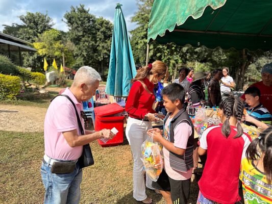 วันที่ 8 ธันวาคม 2566 ณ โรงเรียนบ้านแม่พร้าว ต.สะเอียบ อ.สอง จ.แพร่ นายสมชาติ (นายเงี๊ยบ)สาลีพัฒนา ร้านก๋วยเตี๋ยวลูกชิ้นปลานายเงี๊ยบ รองประธานมูลนิธิหลวงพ่อพูลวัดไผ่ล้อม เป็นประธานมอบอาคารเรียนออนไลน์และทุนจัดซื้อคอมพิวเตอร์ พร้อมอุปกรณ์การกีฬา โดยได้ร่วมกับพระครูปลัดสิทธิวัฒน์ (หลวงพี่น้ำฝน)เจ้าอาวาสวัดไผ่ล้อม จ.นครปฐมมูลนิธิหลวงพ่อพูลวัดไผ่ล้อม และโครงการ 1 ชาม 1 บุญ มาร่วมพิธีทอดผ้าป่าการเพื่อศึกษา สร้างอาคารเรียนออนไลน์ และมอบอุปกรณ์การเรียน การกีฬา โดยมี