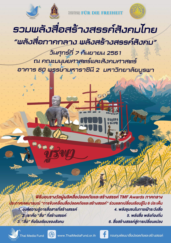 ทั้งนี้ จากความสำเร็จของงานรวมพลังสื่อสร้างสรรค์สังคมไทยในปีที่แล้ว ประกอบกับความสำคัญของการขับเคลื่อนงานด้านการพัฒนาสื่อปลอดภัยและสร้างสรรค์อย่างต่อเนื่อง โดยอาศัยความร่วมมือจากทุกภาคส่วน จึงมีการดำเนินการโครงการรวมพลังสื่อสร้างสรรค์และเชิดชูผู้ผลิตสื่อต่อเนื่องในปี 2561 อีก โดยในปีนี้จะมีกิจกรรมหลักในโครงการ 2 กิจกรรม ได้แก่ กิจกรรมรวมพลังสื่อสร้างสรรค์สังคมไทย และกิจกรรมเชิดชูผู้ผลิตสื่อ โดยในกิจกรรมแรกเป็นการเปิดพื้นที่ใน 4 ภูมิภาคของประเทศ ให้ผู้ประกอบการด้านสื่อ องค์กรภาคีเครือข่าย และประชาชนทั่วไปได้แลกเปลี่ยนเรียนรู้ และรวมตัวกันเพื่อเป็นแนวร่วมในการพัฒนาสื่อปลอดภัยและสร้างสรรค์ร่วมกับกองทุนพัฒนาสื่อปลอดภัยและสร้างสรรค์ ส่วนในกิจกรรมที่สอง จะเป็นการมอบรางวัลเชิดชูผลงาน/องค์กร/บุคคลผู้มีความโดดเด่นทางด้านการสร้าง/ส่งเสริม/พัฒนาสื่อที่ปลอดภัยและสร้างสรรค์ให้แก่สังคม วัตถุประสงค์หลักของทั้ง 2 กิจกรรมนี้คือเพื่อสร้างการมีส่วนร่วมของทุกภาคส่วน และส่งเสริมให้มีการพัฒนาสื่อปลอดภัยและสร้างสรรค์ สำหรับภูมิภาคภาคกลางนั้น สำนักงานกองทุนพัฒนาสื่อปลอดภัยและสร้างสรรค์ได้ร่วมกับมหาวิทยาลัยบูรพา จังหวัดชลบุรี ในการจัดงานรวมพลังสื่อสร้างสรรค์สังคมไทย ประจำปี 2561 “พลังสื่อภาคกลาง พลังสร้างสรรค์สังคม” เพื่อดำเนินการให้บรรลุวัตถุประสงค์ดังกล่าว โดยการเปิดโอกาสให้กลุ่มเป้าหมายที่ทำงานด้านสื่อปลอดภัยและสร้างสรรค์ในพื้นที่ภาคกลางทั้ง 26 จังหวัดนั้น ประกอบด้วย อ่างทอง, ชัยนาท,พระนครศรีอยุธยา, กรุงเทพฯ, ลพบุรี, นครปฐม, นนทบุรี, ปทุมธานี, สมุทรปราการ, สมุทรสาคร, สมุทรสงคราม, สระบุรี, สิงห์บุรี, สุพรรณบุรี, นครนายก, ฉะเชิงเทรา, จันทบุรี, ชลบุรี, ปราจีนบุรี, ระยอง, สระแก้ว, ตราด, กาญจนบุรี, ราชบุรี, เพชรบุรี, ประจวบคีรีขันธ์ เข้ามามีส่วนร่วมในเวทีดังกล่าว