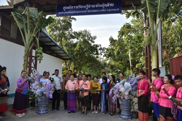 ในการนี้ นายณัฐภัทร สุวรรณประทีป ผู้ว่าราชการจังหวัดสุพรรณบุรี เป็นประธานในพิธีเปิดป้าย ถนนศูนย์การเรียนรู้สายพันธุ์กล้วย 222 ชนิด และมอบรางวัล การแข่งขัน “กินกล้วยวิบาก”/เยี่ยมชม และรับประทานกล้วยทอด ขนมครก กล้วยปิ้ง โดยมีวิทยากรประจำศูนย์การเรียนรู้สายพันธุ์กล้วย 222 ชนิด ให้ความรู้เรื่องกล้วย