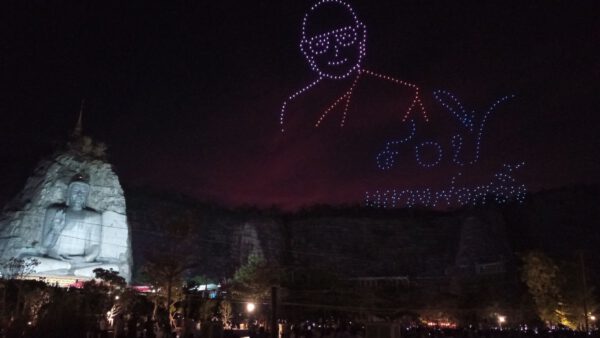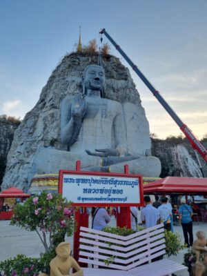 ทั้งนี้ พระพุทธปุษยคีรีศรีสุวรรณภูมิ” (หลวงพ่ออู่ทอง) เริ่มก่อสร้างปี 2553 โดยพระธรรมพุทธิมงคล ที่ปรึกษาเจ้าคณะภาค14และเจ้าอาวาสวัดป่าเลไลยก์วรวิหาร ได้ผ่านมาเห็นภูเขาทำเทียมอำเภออู่ทอง มีรอยเว้าแหว่งทำให้นึกถึงพระพุทธรูปที่ภูเขาบามิยันประเทศอัฟกานิสถาน ที่ถูกตาลีบันทำลาย จึงปรารถนาจะสร้างพระพุทธรูปไว้ในที่แห่งนี้เป็นการแกะหินบนหน้าผาแห่งเดียวในสุพรรณบุรี โดยเริ่มแกะสลักองค์พระที่หน้าผาตั้งแต่ปี 2557จนถึงปี 2561จึงแล้วเสร็จใช้เวลาแกะสลัก 4 ปี 2 เดือน พร้อมตกแต่งสถานที่ให้สวยงามและ องค์การบริหารการพัฒนาพื้นที่พิเศษเพื่อการท่องเที่ยวอย่างยั่งยืน (องค์การมหาชน) หรือ อพท. ได้ดำเนินการจัดสร้าง Sky Walk เพื่อชมพระพุทธปุษยคีรีศรีสุวรรณภูมิ พระแกะสลักภูผาที่“ใหญ่ที่สุดในโลกหรือหลวงพ่ออู่ทอง เป็นพระพุทธรูปปางโปรดพุทธมารดา ที่เกิดจากการแกะสลักหน้าผาหินแบบลอยนูน มีความสูง 108 เมตร ฐานกว้าง 88 เมตร หน้าตักกว้าง 65 เมตร เป็นส่วนหนึ่งของการสร้างพุทธมณฑลจังหวัดสุพรรณบุรี พื้นที่โดยรอบ ประมาณ 100 ไร่ ใช้งบประมาณกว่า100 ล้านบาท จากเงินของประชาชนร่วมกันบริจาคทั้งสิ้น ขณะที่ได้ทีการเจาะอุโมงค์เป็นห้องโถงคล้ายถ้ำขนาดใหญ่ที่บริเวณด้านหลังพระพุทธปุษยคีรี ศรีสุวรรณภูมิ เพื่อใช้สำหรับเป็นห้องประชุม และสถานที่ปฏิบัติธรรม โดยมีพื้นที่ ประมาณ 14,400 ตร.ม. ใช้งบประมาณการก่อสร้างประมาณ 288 ล้านบาท ซึ่งภายหลังเสร็จสิ้นพิธีได้มีการบินโดรน 400 ลำ แปรอักษรบนท้องฟ้า เป็นรูปพระพุทธปุษยคีรีศรีสุวรรณภูมิและ แหล่งท่องเที่ยวต่างๆ ที่หน้าผาเขามังกรบิน ซึ่งเป็นครั้งแรกของจังหวัดสุพรรณบุรี