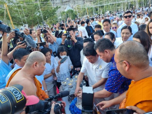 โดยมีนายณัฐภัทร สุวรรณประทีป ผู้ว่าราชการจังหวัด รองผู้ว่าราชการจังหวัด ดร.อุดมโปร่งฟ้า ที่ปรึกษารัฐมนตรีว่าการกระทรวงการพัฒนาสังคมและความมั่นคงของมนุษย์ทพ.อนุศักดิ์ คงมาลัย สมาชิกวุฒิสภาตลอดจนพุทธศาสนิกชนชาวสุพรรณบุรีทุกหมู่เหล่า ร่วมประกอบพิธีเป็นจำนวนมาก