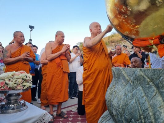 ที่บริเวณมหาพุทธสถานเมืองโบราณเขาทำเทียม หมู่ 12 ต.อู่ทอง อ.อู่ทอง จ.สุพรรณบุรีเจ้าประคุณสมเด็จพระธีรญาณมุนี กรรมการมหาเถรสมาคม วัดเทพศิรินทราวาส เจ้าประคุณสมเด็จพระมหารัชมงคลมุนี กรรมการมหาเถรสมาคม เจ้าคณะใหญ่หนกลางวัดไตรมิตรวิทยาราม พระธรรมพุทธิมงคล ที่ปรึกษาเจ้าคณะภาค14และเจ้าอาวาสวัดป่าเลไลยก์วรวิหาร จุดธูปเทียนบูชาพระพุทธปุษยคีรีศรีสุวรรณภูมิ เมตตาเจิม ปิดทองและประกอบพิธียกพระเกตุมาลา พระสงฆ์เจริญชัยมงคลคาถา