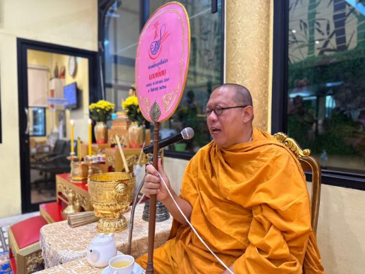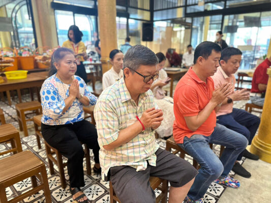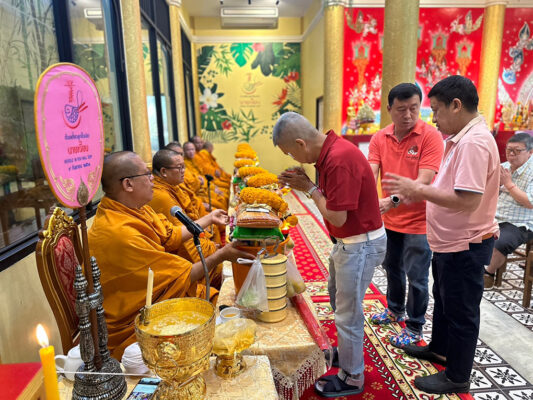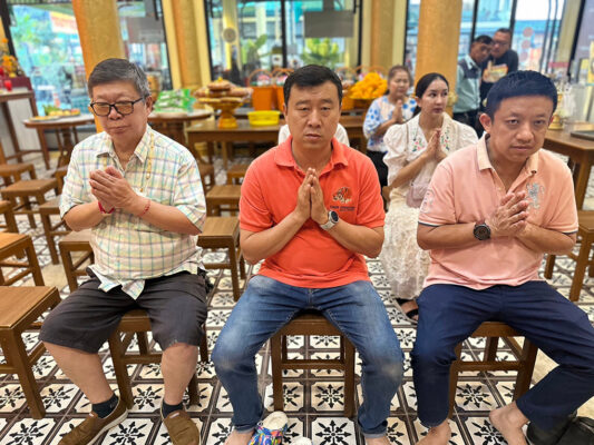 พร้อมกันนี้ พระครูปลัดสิทธิวัฒน์(หลวงพี่น้ำฝน) ได้อำนวยพรปีใหม่ และอธิษฐานจิตเครื่องประดับศาลพระภูมิชุดใหม่นำไปเปลี่ยนในศาลพระภูมิประจำที่ร้านนี้ อันประกอบด้วย ตุ๊กตาชาย 1 คู่ หญิง 1 คู่ ช่าง 1คู่ ม้า 1 คู่ ละครยกหญิงชาย 2 โรง และอื่นๆ เพื่อความเป็นสิริมงคล และมอบวัตถุมงคลให้พนักงานทุกคน