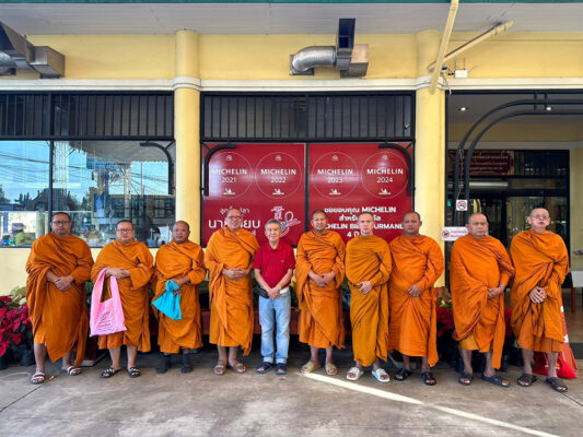 วันเสาร์ที่ 6 มกราคม พ.ศ.2567 เวลา 6.00 น.พระครูปลัดสิทธิวัฒน์ (หลวงพี่น้ำฝน) เจ้าอาวาสวัดไผ่ล้อม อ.เมือง จ. นครปฐม เป็นประธานฝ่ายสงฆ์ พร้อมพระสงฆ์วัดไผ่ล้อมรวม 9 รูป เจริญพระพุทธมนต์ เนื่องในงานทำบุญปีใหม่ พุทธศักราช 2567 ร้านก๋วยเตี๋ยวลูกชิ้นปลานายเงี๊ยบ สาขา พุทธมณฑลสาย 4 โดย นายสมชาติ สาลีพัฒนา (นายเงี๊ยบ) เจ้าของร้านก๋วยเตี๋ยวลูกชิ้นปลานายเงี๊ยบที่โด่งดัง ด้วยรางวัลมิชลิน ปีที่ 4 ซึ่งการจัดพิธีทำบุญปีใหม่ของร้านก๋วยเตี๋ยวลูกชิ้นปลานายเงี๊ยบ ทั้ง2แห่ง จัดขึ้นเป็นประจำทุกปีตลอดมา และมีพนักงานร้านกว่า 30 คนที่ทำงานอยู่ร้านร้านก๋วยเตี๋ยวลูกชิ้นปลานายเงี๊ยบ สาขา พุทธมณฑลสาย4 นี้ เข้ารับศีลและร่วมรับฟังพระสงฆ์ทั้ง 9รูปเจริญพระพุทธมนต์ และร่วมกันถวายภัตตาหารเช้า ถวายเครื่องสังฆทาน จตุปัจจัยไทยธรม แด่คณะพระสงฆ์วัดไผ่ล้อม และกรวดน้ำรับพร