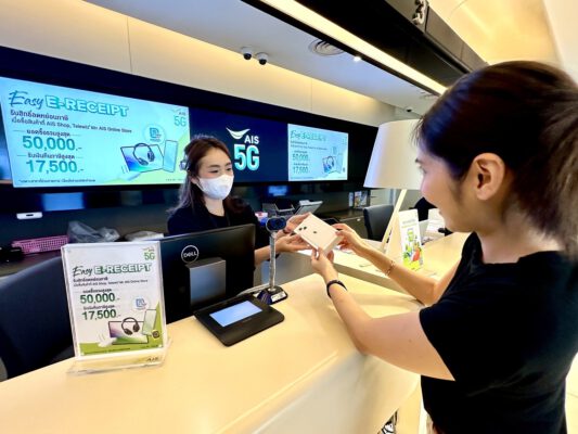 นายปรัธนา ลีลพนัง หัวหน้าคณะผู้บริหารกลุ่มลูกค้าทั่วไป AIS กล่าวว่า “AIS ขอร่วมเป็นส่วนหนึ่งในการอำนวยความสะดวกให้กับลูกค้า ตามโครงการลดหย่อนภาษี “Easy E-Receipt” โดยเราได้เตรียมความพร้อมในการให้บริการลูกค้าเพื่อส่งมอบ e-Tax Invoice หรือ e-Receipt ได้อย่างมีประสิทธิภาพ ทั้งที่ AIS Shop, Telewiz และ AIS Online Store มากไปกว่านี้เรายังจัดเตรียมสินค้าและบริการ ทั้งสมาร์ทโฟน 5G พร้อมข้อเสนอที่ดีที่สุด รวมถึงยังมี สินค้าในกลุ่ม Gadget, Accessory, IoT และอีกมากมาย แบบมาช้อปที่เราจุดเดียว ทั้งคุ้ม ทั้งสะดวก ทั้งได้ลดหย่อนภาษีแบบเต็ม MAX”