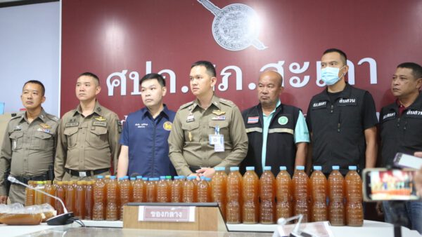 จากนั้นเจ้าหน้าที่ได้ไปตรวจค้นร้านขายใบพืชกระท่อม ใกล้หน้าโรงเรียนแห่งหนึ่งในพื้นที่หมู่ที่ 2 ต.สำนักขาม อ.สะเดา หลังมีผู้แจ้งว่ามีการลักลอบขายน้ำใบกระท่อม พบกับนายภาณุวัฒน์ (สงวนนามสกุล) อายุ 28 ปี ซึ่งแจ้งเจ้าหน้าที่ว่าตนเองไม่ได้ขายน้ำใบกระท่อม แต่ท่าทางมีพิรุธ