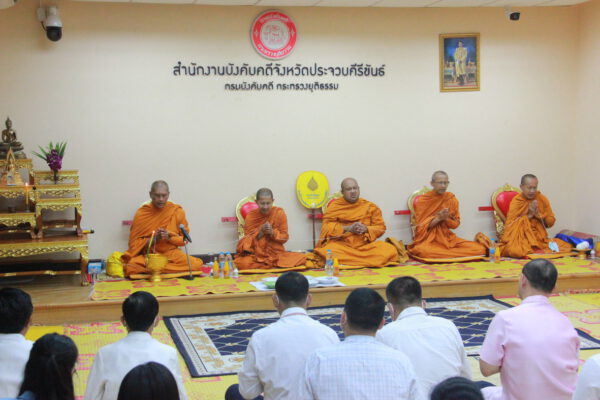 เมื่อเวลา 09.30 น. วันที่ 13 ม.ค.2567 นายรณกร พรหมอินทร์ ผู้อำนวยการสำนักงานบังคับคดีจังหวัดประจวบคีรีขันธ์ นำข้าราชการ เจ้าหน้าที่ และบุคลากรในสำนักงานฯ ร่วมทำบุญสำนักงานและเลี้ยงภัตตาหารเพล เพื่อความเป็นสิริมงคลกับบุคลาการและเจ้าหน้าที่สำนักงาน โดยมี พระครูสุจิตสิทธิธรรม เจ้าอาวาสวัดหนองกุ่มสุมังคลาราม เป็นประธานพิธีสงฆ์ พร้อมพระสงฆ์ จำนวน 5 รูป สวดเจริญพุทธมนต์ มี นายบรรพต รัตนจันทร์ ผู้บัญชาการเรือนจำจังหวัดประจวบฯ นายไพฑูรย์ ฐิติวิทยกุล ผู้อำนวยการสำนักงานบังคับคดีจังหวัดประจวบฯ สาขาหัวหิน นายอดิศักดิ์ เสรีพงศ์ หัวหน้าฝ่ายทัณฑปฏิบัติ เรือนจำจังหวัดฯ นายปิยชาติ ไฮ้คง หัวหน้ากลุ่มยุทธศาสตร์และอำนวยการ สำนักงานคุมประพฤติจังหวัดประจวบฯ เจ้าหน้าที่สำนักงานยุติธรรมจังหวัดฯ เครือข่ายวิทยากรตัวคูณของสำนักงานบังคับคดีจังหวัดฯ ตลอดจนผู้แทนหน่วยงานในสังกัดกระทรวงยุติธรรม เข้าร่วม ที่สำนักงานบังคับคดีจังหวัดฯ ถนนเพชรเกษม-หนองเสือ ต.เกาะหลัก อ.เมือง จ.ประจวบฯ