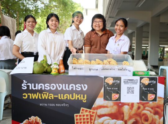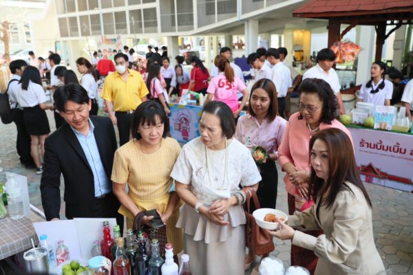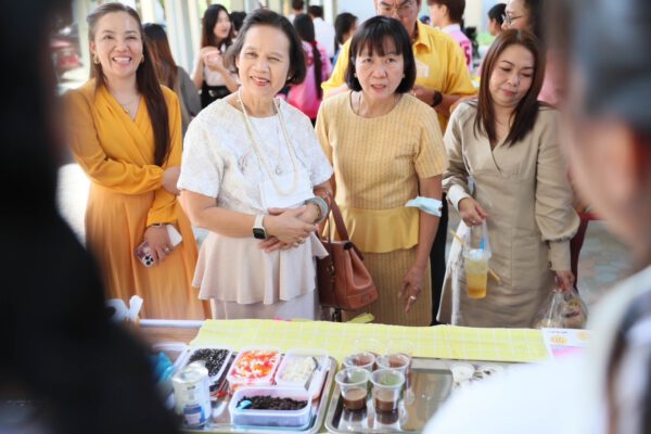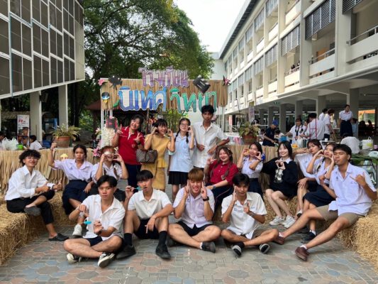 ผู้ช่วยศาสตราจารย์ ดร.เยาวภา กล่าวต่อว่า สำหรับตลาดของสาขาวิชานิเทศศาสตร์ จัดระหว่างวันที่ 22 – 26 มกราคม 2567 ใช้ชื่อตลาดว่า “โรงเรียนนิเทศวิทยา” เนื่องจาก Concept ตลาด ย้อนวัยเด็ก ด้วยการแต่งกายชุดนักเรียน และของที่ขายในตลาดจะเน้นของที่ขายหน้าโรงเรียน มีร้านจำหน่ายสินค้า จำนวน 12 ร้าน ได้แก่ 1)ร้านโซดา ซู่ซ่า (ขายอิตาเลี่ยนโซดา) Concept : ขายน้ำอิตาเลียนโซดา ที่กินแล้วจะซู่ซ่าไปทั้งตัว 2) ร้านก๊อบกรอบ (ขายผักทอด) Concept : ผักทอดกรอบมันก็ต้องก๊อบกรอบใช่ไหมฮะ…คุณครู!! 3) ร้านจีบปุ๊บติดปั๊บ (ขายขนมจีบ) Concept : ขายขนมจีบ เพราะหวังจีบคุณให้ติด จีบแล้วจบ (การขาย) 4) ร้านห้าป่าช้า (ขายวุ้น) Concept :ในเขตโรงเรียนมีเรื่องเล่าแปลกๆ มากมายและได้ข่าวว่ามีดิน 5 ป่าช้าเป็นส่วนผสมที่ไล่ผีของโรงเรียน ดังนั้น เราจึงทำวุ้นห้าป่าช้าให้เป็นขนมมงคลให้กินเพื่อขับไล่สิ่งชั่วร้าย และได้สนุกกับรสชาติของวุ้นห้าป่าช้า 5) ร้าน มะแพ้วแผว (ขายมะพร้ามเผา) Concept : มะพร้าวที่ไม่ได้มีดีแค่น้ำ แต่ยังมีดีที่เนื้อหอม หวาน อร่อย 6) ร้านชิกกี้ ชิกเก้น Concept: ไก่ทอด ไม้ละ 10 บาท ย้อนวัยให้นึกถึงอาหารหน้าโรงเรียน 7) ร้าน ดิบเถื่อน/ไอศรีมแท่ง Concept : เป็นร้านขายไมโลดิบ แก้วละ 20 บาท เพียงแค่คุณจิบก็ทำให้คุณย้อนเวลาวัยมัธยมได้ในอึก!!!เดียว เพราะร้านใส่ไมโลสูตรรถโรงเรียน 8) ร้านบึ้มเบิ้ม สดสด Concept:น้ำตาลสดวุ้นมะพร้าวหอมหวานชื่นใจ หน้าโรงเรียนไม่มีขายเพราะขายหลังวัด 9) ร้านเหลืองกรอบซุกไข่ Concept:ขายเกี๊ยวทอดห่อไข่นกกระทาและเกี๊ยวห่อหมูเด้งที่ขายหน้าโรงเรียนต้องเหนียว แต่ร้านขายอยู่หลังโรงเรียนเลยกรอบ 10) ร้าน ปัง ปินาศ Concept:ขายขนมปังปิ้งย้อนวัยเด็ก 11) ร้านทอดมันหลายใจเนื้อลำใยเต็มคำ Concept:อิ่มแล้วยังสดชื่นไปกับทอดมันเนื้อแน่นเด้งสู้ฟันและเนื้อลำใยชิ้นเบิ้มเย็นฉ่ำชื่นใจ และ12) ร้านแคปหมู-ครองแครง -วอฟเฟิล Concept : หวาน กรอบ ชอบจริง ๆ