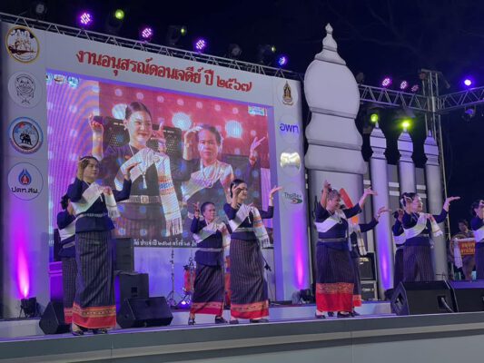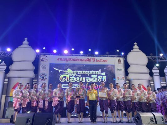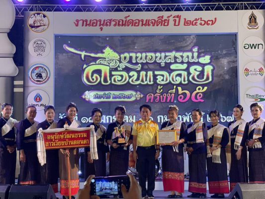 ที่ เวทีการแสดงศิลปวัฒนธรรม บริเวณพระบรมราชานุสรณ์ดอนเจดีย์ อำเภอดอนเจดีย์ จังหวัดสุพรรณบุรี สำนักงานวัฒนธรรมจังหวัดสุพรรณบุรี จัดการประกวดรำวงสุพรรณบุรี และรำวงมหาดไทย ในงานอนุสรณ์ดอนเจดีย์ ประจำปี ๒๕๖๗