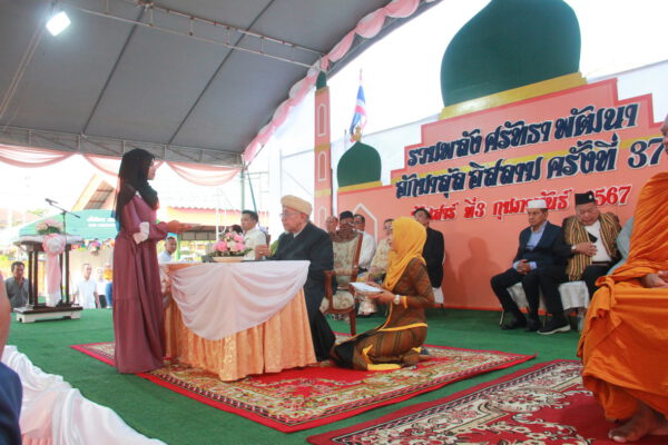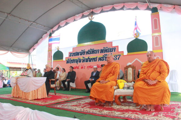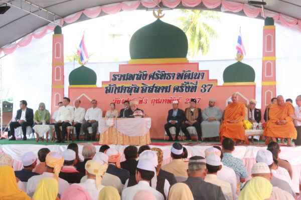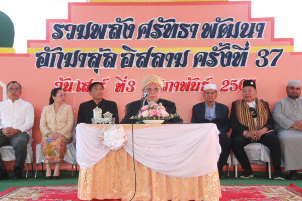 เมื่อเวลา 16.30 น. วันที่ 3 ก.พ.2567 ที่มัสยิดอักมาลุ้ลอิสลาม หมู่ 10 บ้านเขาเสน ต.อ่าวน้อย อ.เมือง จ.ประจวบคีรีขันธ์ นายอรุณ บุญชม จุฬาราชมนตรี ได้เดินทางมาเป็นประธานเปิดงาน รวมพลังศรัทธาพัฒนาอักมาลุ้ลอิสลาม ครั้งที่ 37 และเปิดป้ายมัสยิดอักมาลุ้ลอิสลาม ตลอดจนเยี่ยมเยียนชุมชนมุสลิมฯ โดยมี นายองครักษ์ ทองนิรมล รองผู้ว่าราชการจังหวัดประจวบคีรีขันธ์ กล่าวต้อนรับ และมี นายอินยาส ขำวิไล ประธานจัดงาน พร้อม นายยูซบ โต๊ะวัง ประธานคณะกรรมการอิสลามประจำจังหวัดประจวบฯ กล่าวรายงาน โดยมี พระครูสุจิตสิทธิธรรม เจ้าคณะอำเภอเมืองฯ (ฝ่ายธรรมยุต) เจ้าอาวาสวัดหนองกุ่มสุมังคลาราม(ผู้แทนเจ้าคณะจังหวัดฯ) นายสวาป เผ่าประทาน รองประธานคณะกรรมการกลางอิสลามแห่งประเทศไทย นายประสูตร หอมบันเทิง นายอำเภอเมืองฯ นางกฤษณา แผ่แสงจันทร์ วัฒนธรรมจังหวัด นายชาญวิทย์ อุณหสุทธิยานนท์ ประธานสภาวัฒนธรรมจังหวัดฯ นายเสทือน ลิบลับ ประธานสภาวัฒนธรรมอำเภอเมืองฯ นายสังคม แดงโชติ ส.ส.ประจวบฯเขต 1 นายสราวุธ ลิ้มอรุณรักษ์ นายก อบจ. คณะกรรมการอิสลามกลางฯ คณะกรรมการอิสลามประจำจังหวัดฯ หัวหน้าส่วนราชการ ผู้แทนหน่วยงาน คณะกรรมการจัดงาน ผู้นำมัสยิดในพื้นที่ จ.ประจวบฯ ผู้บริหารธนาคารอิสลามแห่งประเทศไทย ผู้บริหารธนาคารอิสลาม สาขาหัวหิน ผู้บริหารองค์กรปกครองส่วนท้องถิ่น ผู้นำท้องที่ เครือข่ายภาคประชาสังคม กลุ่มสตรีและเยาวชน ตลอดจนชาวมุสลิมในพื้นที่และจังหวัดใกล้เคียง เข้าร่วม