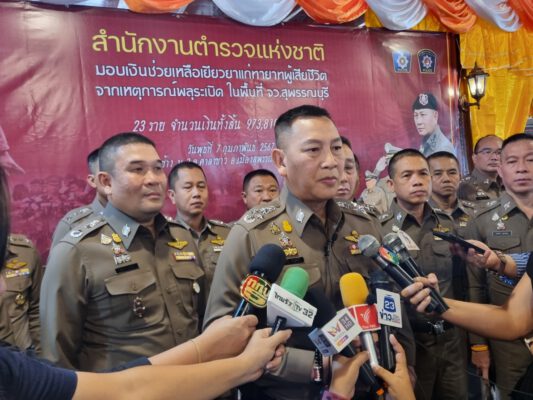 พลตำรวจเอก กิตติ์รัฐ พันธุ์เพ็ชร์ รองผู้บัญชาการตำรวจแห่งชาติ กล่าวให้กำลังใจครอบครัวผู้สูญเสีย ว่า สำนักตำรวจแห่งชาติตำรวจภูธรภาค ๗ และตำรวจภูธรจังหวัดสุพรรณบุรีได้เล็งเห็นถึงความเดือดร้อนของครอบครัวผู้เสียชีวิตและผู้ที่ได้รับผลกระทบจากเหตุการณ์ดังกล่าว และเพื่อเป็นการบรรเทาความเดือดร้อนให้กับครอบครัวผู้ที่ได้รับผลกระทบ จึงได้เปิดบัญชีรับบริจาคเงินช่วยเหลือจากพี่น้องข้าราชการตำรวจทั่วประเทศและประชาชนทั่วไป ขึ้น เพื่อช่วยบรรเทาความเดือดร้อน เราไม่ต้องการอะไรจากประชาชน เรามีเจตนาอย่างเดียวว่า ในมุมของตำรวจที่มีหน้าที่ในการสืบสวน สอบสวน ความผิดหรือเหตุการณ์ใดๆที่เกิดขึ้น โดยเฉพาะเรื่องแบบนี้ เราควรจะให้ความช่วยเหลือกันตามหลักมนุษยชน ขณะเดียวกัน ได้สั่งการให้ตรวจสอบโรงงานดังกล่าวว่าตามลำดับขั้นตอนตามกฎหมาย ขอให้ประชาชนมั่นใจการทำงานของตำรวจว่าจะดำเนินการอย่างละเอียดรอบคอบเพื่อความเป็นธรรมกับทุกฝ่าย