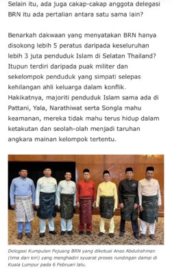 สื่อดังอย่าง UtusanTV ประเทศมาเลเซีย ได้วิเคราะห์ข่าวใหญ่ของไทยเราได้น่าสนใจอย่างมาก “การพูดคุยสันติภาพจังหวัดชายเเดนภาคใต้ที่กำลังเจรจาอยู่ขณะนี้ มีการตั้งคำถามมาว่า.. จริงหรือ BRN มีอำนาจในการหยุดยั้งการก่อการร้ายในจังหวัดชายเเดนภาคใต้จริงหรือไม่ ?