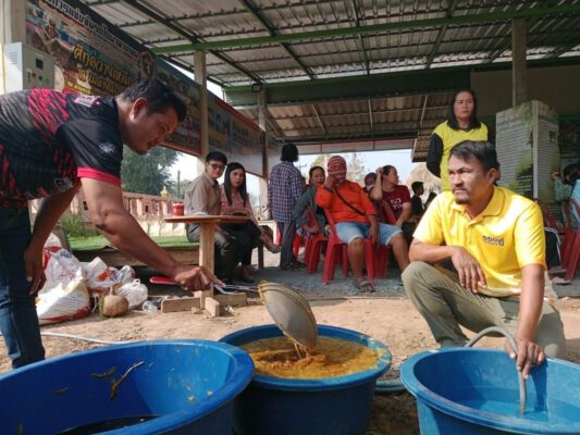 นอกจากนี้ยังมีการสาธิตการทำกระดาษสาและกระถางต้นไม้ จากฟางข้าวเก่า หรือฟางที่ขายไม่ได้ เพื่อส่งเสริมการนำเศษวัสดุเหลือใช้มาใช้ให้เกิดประโยชน์ งดการเผา เพื่อป้องกันมลพิษ