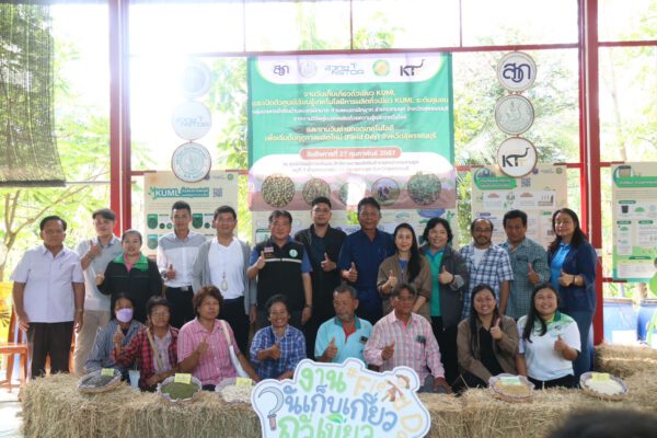 สำหรับ ถั่วเขียวเป็นพืชทางเลือกชนิดหนึ่งที่ช่วยให้เกษตรกรไทยเพิ่มรายได้ เพราะนอกจากจะใช้น้ำน้อย เก็บเกี่ยวได้เร็วแล้ว ยังช่วยบำรุงดินอีกด้วย ปัจจุบันสำนักงานพัฒนาวิทยาศาสตร์และเทคโนโลยีแห่งชาติ (สวทช.) ร่วมกับมหาวิทยาลัยเกษตรศาสตร์ ดำเนินงานวิจัยและพัฒนาถั่วเขียวสายพันธุ์ดี 6 สายพันธุ์ (KUML #1 – 5,8) ที่ให้ผลผลิต 300 กิโลกรัมต่อไร่ และมีขนาดเมล็ดใหญ่ มีความต้านทานต่อโรคราแป้งและใบจุด เป็นการเพิ่มผลผลิตและยกระดับการผลิตถั่วเขียวที่มีคุณภาพ เป็นการสร้างรายได้ให้กับเกษตรกรไทยได้เป็นอย่างดี เหมาะสมกับสภาพภูมิประเทศของไทยที่ขาดแคลนน้ำในฤดูแล้ง โดยโครงการนี้ได้รับทุนสนับสนุนจาก สำนักงานพัฒนาการวิจัยการเกษตร (องค์การมหาชน) หรือ สวก. ซึ่งได้วางแผนการขยายผลถั่วเขียวสายพันธุ์ KUML ร่วมกับมหาวิทยาลัยเกษตรศาสตร์ กำแพงแสน ทำงานร่วมกับหน่วยงานภาครัฐ สถาบันการศึกษา และใช้กลไก “ตลาดนำการผลิต” ดำเนินงานร่วมกับภาคเอกชน บริษัท กิตติทัต จำกัด ซึ่งจะมีบทบาทสำคัญในการผลักดันและยกระดับกลุ่มเกษตรกรในการบริหารจัดการ กำหนดมาตรฐานและราคาถั่วเขียว KUML รับซื้อผลผลิตถั่วเขียวปลอดภัย ในจังหวัดสุพรรณบุรี จังหวัดสุรินทร์ และจังหวัดศรีสะเกษ โดยปริมาณความต้องการผลผลิตถั่วเขียวเพื่อแปรรูปเป็นถั่วกะเทาะซีก ปีละ 4,000 ตัน และบริษัท ข้าวดินดี จำกัด รับซื้อผลผลิตถั่วเขียวอินทรีย์ ในจังหวัดอำนาจเจริญ โดยปริมาณความต้องการผลผลิตถั่วเขียวเพื่อแปรรูปเป็นพาสต้าถั่วเขียวอินทรีย์ ปีละ 20 ตัน ในการถ่ายทอดเทคโนโลยีการผลิตถั่วเขียว KUML จะดำเนินงานร่วมกับสำนักงานเกษตรจังหวัดในพื้นที่ โดยมีการพัฒนาต้นแบบเกษตรกร แปลงเรียนรู้ และพื้นที่ต้นแบบการผลิตเมล็ดพันธุ์ ถั่วเขียวในระดับชุมชน มุ่งหวังการสร้างกลุ่มผู้ผลิตถั่วเขียวเข้าโรงงานอุตสาหกรรมที่มีผลผลิตสูง (Grain) ตรงกับความต้องการของตลาด เพื่อให้เกิดความยั่งยืนในการดำเนินงาน
