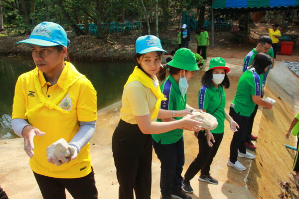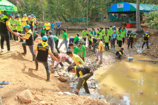 เมื่อเวลา 09.30 น. วันที่ 13 มี.ค.67 ที่บริเวณฝายชะลอน้ำหุบเพชร บ้านห้วยพลู ต.ร่อนทอง อ.บางสะพาน จ.ประจวบคีรีขันธ์ นายสามารถ เอี่ยมวงษ์ รองผู้อำนวยการฝ่ายกิจการสาขาภาคตะวันตก ธนาคารเพื่อการเกษตรและสหกรณ์การเกษตร (ธ.ก.ส.) นางวิภารัตน์ สัมนักษร ผู้อำนวยการสำนักงาน ธ.ก.ส.จังหวัดประจวบฯ นายสถาพร จานแก้ว ผู้จัดการ ธ.ก.ส.สาขาเกาะยายฉิม นายคณิตพงศ์ สังสกฤษ ผู้ช่วยผู้จัดการ ธ.ก.ส.สาขาเกาะยายฉิม พร้อมพนักงาน ธ.ก.ส. ร่วมกับ นายนิกร โพธิ์น้อย นายก อบต.ร่อนทอง นายบรรเทิง วงศ์สมัย ผู้ใหญ่บ้านหมู่ 11 บ้านห้วยพลู พนักงาน อบต.ร่อนทอง ชาวบ้านบ้านห้วยพลู ครูและนักเรียนโรงเรียนบ้านวังน้ำเขียว ตลอดจนส่วนราชการ และประชาชนจิตอาสาในพื้นที่ ได้ร่วมจัดกิจกรรมเรียงหินสร้างความมั่นคงให้กับฝายชะลอน้ำหุบเพชร ที่ได้รับงบประมาณค่าวัสดุอุปกรณ์ในการสร้างจาก ธ.ก.ส. จำนวน 150,000 บาท และชุมชนช่วยงานทดแทนค่าจ้างแรงงาน 25,000 บาท รวมงบประมาณในการก่อสร้างเป็นเงิน 175,000 บาท