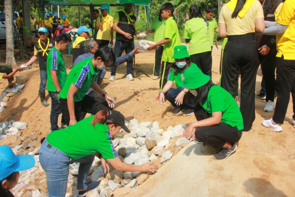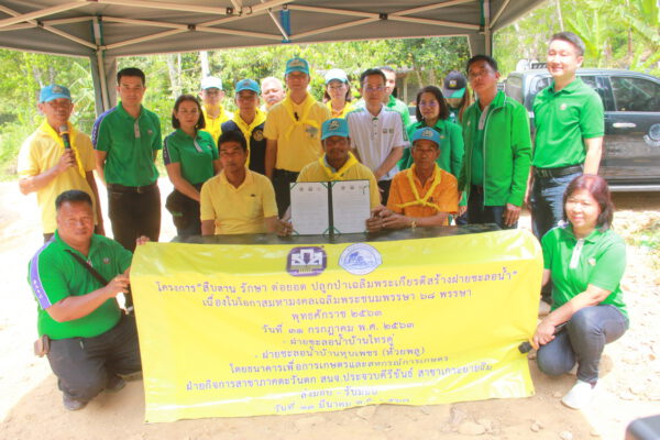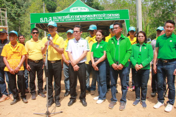 โดยกิจกรรมครั้งนี้อยู่กายใต้ “โครงการสืบสาน รักษา ต่อยอด ปลูกป่าเฉลิมพระเกียรติ สร้างฝายชะลอน้ำ” เนื่องในโอกาสมหามงคลเฉลิมพระชนมพรรษา 68 พรรษา พระบาทสมเด็จพระเจ้าอยู่หัว ในวันที่ 28 กรกฎาคม 2563 ซึ่ง ธ.ก.ส เล็งเห็นว่า เป็นโครงการที่มีคุณค่า มีคุณประโยชน์ต่อเกษตรกรลูกค้าและชุมชน ทั้งภาคเกษตรกรรมและการอุปโภคบริโภคของชุมชน เป็นการสร้างความชุ่มชื้นช่วยฟื้นฟูระบบนิเวศ ส่งเสริมการอนุรักษ์ดิน ป่า น้ำ ประกอบกับปี 2566 ที่ผ่านมา เกษตรกรลูกค้า ธ.ก.ส. ประสบปัญหาภัยแล้งต่อเนื่อง ขาดน้ำในการอุปโภคและบริโภค ส่งผลเสียหายต่อพืชผลทางเกษตร ธ.ก.ส. จึงสนับสนุนงบประมาณเป็นกรณีพิเศษสร้างฝายชะลอน้ำ จำนวน 2 แห่ง โดยแห่งแรก ได้คัดเลือกพื้นที่ป่าต้นน้ำไทรคู่ หมู่ 2 ตำบลร่อนทอง สร้างฝายชะลอน้ำบ้านไทรคู่ เมื่อเดือน ก.พ.2567 ที่ผ่านมา ซึ่งมีจำนวนครัวเรือนที่ได้รับประโยชน์เพื่อการบริโภค อุปโภครวมทั้งสิ้น 167 ครัวเรือน เป็นลูกค้า ธ.ก.ส. 62 ครัวเรือน เกษตรกรบุคคลทั่วไป 105 ครัวเรือน และประโยชน์ด้านเกษตรกรรมได้แก่ ปาล์ม ยางพารา ผลไม้ รวม 2,986 ไร่