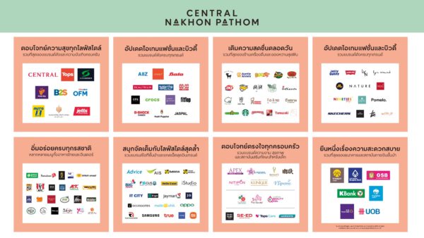 2. ผนึกกำลังธุรกิจกลุ่มเซ็นทรัล ได้แก่ ห้างเซ็นทรัล เปิดปฐมบทใหม่ของความสุขแห่งการช้อปบนพื้นที่กว่า 14,000 ตร.ม. ในดีไซน์การออกแบบที่ได้แรงบันดาลใจจากอัตลักษณ์อันโดดเด่นของจังหวัดอย่าง ‘พระปฐมเจดีย์’ พร้อมจับมือกับ The Maker ท้องถิ่น ร่วมสร้างผลงานการตกแต่งห้างเพื่อหลอมรวมเป็นห้างสำหรับทุกคนในจังหวัด ครบครันทุกความต้องการกับจักรวาลสินค้าแบรนด์ชั้นนำระดับโลก อาทิ Lancome, Estee Lauder, Kiehl’s, Shiseido, Dyson, Nespresso ฯลฯ และสะดวกเหนือระดับกับบริการที่ดีที่สุด เสมือนบ้านหลังที่ 2 อาทิ Personal Shopper on Demand โทร.1425 กด 3 ที่พร้อมอำนวยความสะดวกและแจ้งสิทธิพิเศษให้เหล่านักช้อปอย่างครบครันจากผู้เชี่ยวชาญในการแนะนำสินค้าของทางห้างฯ พร้อมโปรโมชันสุดพิเศษ กิจกรรมสร้างแรงบันดาลใจ และช่วยเหลือสังคมมากมาย ร่วมด้วยธุรกิจอื่นๆ ในกลุ่มเซ็นทรัล ไม่ว่าจะเป็น Tops, Power Buy, B2S, Supersports, OfficeMate และ Auto1 อีกด้วย