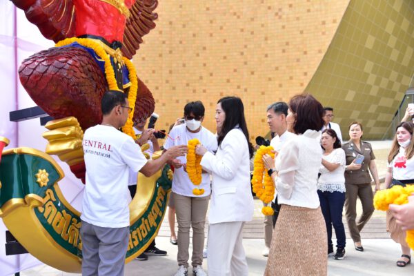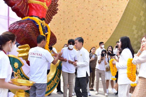 วันที่ 21 มีนาคม 2567 ที่บริเวณหน้าห้างสรรพสินค้าเซ็นทรัลนครปฐม นายสุรศักดิ์ เจริญศิริโชติ ผู้ว่าราชการจังหวัดนครปฐม พร้อมด้วย คุณรวิศรา จิราธิวัฒน์ ประธานบริหารฝ่ายการตลาด กลุ่มห้างสรรพสินค้าเซ็นทรัล ในเครือเซ็นทรัล รีเทล เป็นประธานในพิธีบวงสรวงและอัญเชิญตราตั้งพระราชทาน “พระครุฑพ่าห์” ของห้างสรรพสินค้าเซ็นทรัล สาขาใหม่ล่าสุดลำดับที่ 28 ขึ้นประดิษฐานที่ห้างสรรพสินค้าเซ็นทรัลนครปฐม เพื่อความเป็นสิริมงคล โดยมี นางสาวอโรชา นันทมนตรี รองผู้ว่าราชการจังหวัดนครปฐม นางวราภรณ์ เจริญศิริโชติ นายกเหล่ากาชาดจังหวัดนครปฐม พันโท สินธพ แก้วพิจิตร สมาชิกสภาผู้แทนราษฎรจังหวัดนครปฐม เขต 2 นายจิรวัฒน์ สะสมทรัพย์ นายกองค์การบริหารส่วนจังหวัด ตลอดจนนายอำเภอเมืองนครปฐม รองผู้บัญชาการตำรวจภูธรภาค 7 ผู้บังคับการตำรวจภูธร จังหวัด ผกก.สภ.เมืองนครปฐม รองนายกเทศมนตรีจังหวัดนครปฐม จัดหางาน จังหวัดนครปฐม ประชาสัมพันธ์จังหวัด หอการค้าจังหวัด พาณิชย์จังหวัด ประธานสภาอุตสาหกรรม สมาชิกสภาผู้แทนราษฎร จังหวัดนครปฐม เขต 6 สวัสดิการแรงงาน จังหวัดนครปฐม ผู้แทนภาครัฐ เอกชน พร้อมทีมผู้บริหารห้างสรรพสินค้าเซ็นทรัล สื่อมวลชน และพนักงาน ให้เกียรติเข้าร่วมงานอย่างคับคั่ง